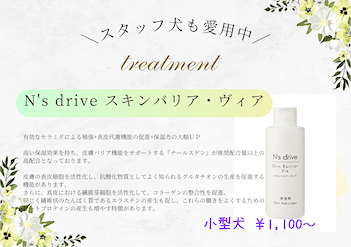 天然ハーブの力で愛犬の皮膚や被毛のトラブルをケアし、リラックス効果も期待できる施術です。アロマの香りで心地よく、保湿や消臭効果も期待できます。愛犬の健康と美しさをサポートします。